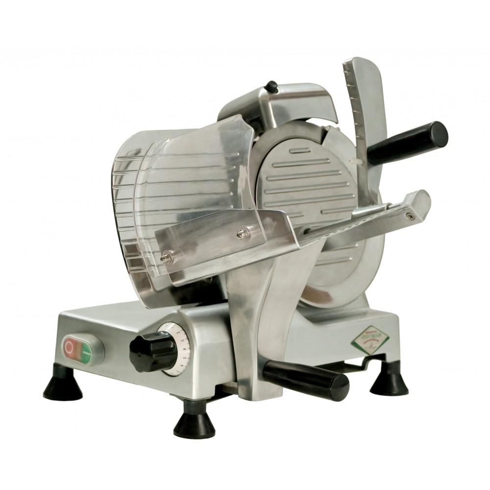 Слайсер ЛР-220 представляет собой полуавтоматическое устройство с ручной подачей продукта, предназначенное для точной и эффективной нарезки различных пищевых продуктов. Оснащён дисковым ножом диаметром 220 мм, который вращается со скоростью 470 об/мин, что обеспечивает ровные и аккуратные ломтики. Толщина нарезки регулируется в диапазоне от 0 до 13 мм, позволяя адаптировать процесс под разные требования.