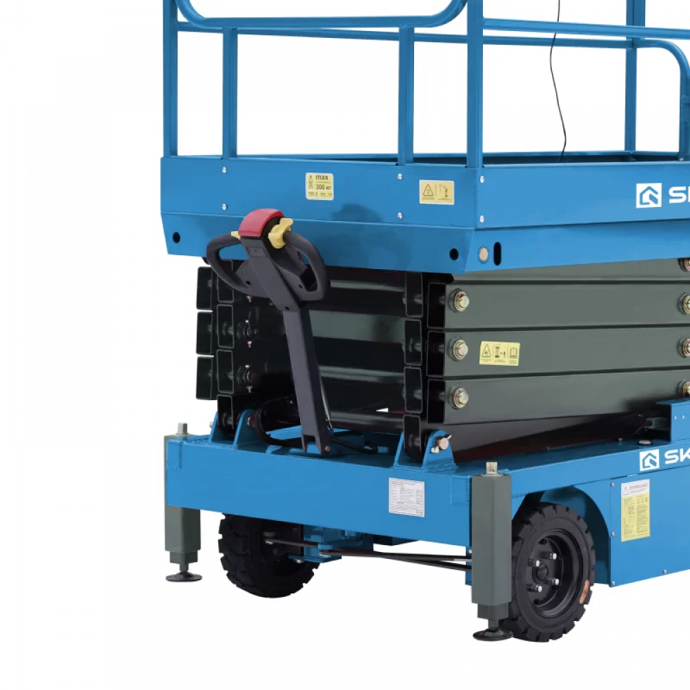 Управление и передвижение ножничным самоходным подъемником SPF1305 осуществляются с помощью выносного пульта и электроприводной рукояти. Наличие тягового электродвигателя позволяет снизить нагрузку на оператора. Цельнолитые шины и высокий клиренс обеспечивают успешное преодоление небольших препятствий и тихий ход. Грузоподъемность модели — 500 кг, рабочая высота — 13 м. Область применения: складские комплексы, выставочные павильоны, транспортные терминалы, торговые объекты.