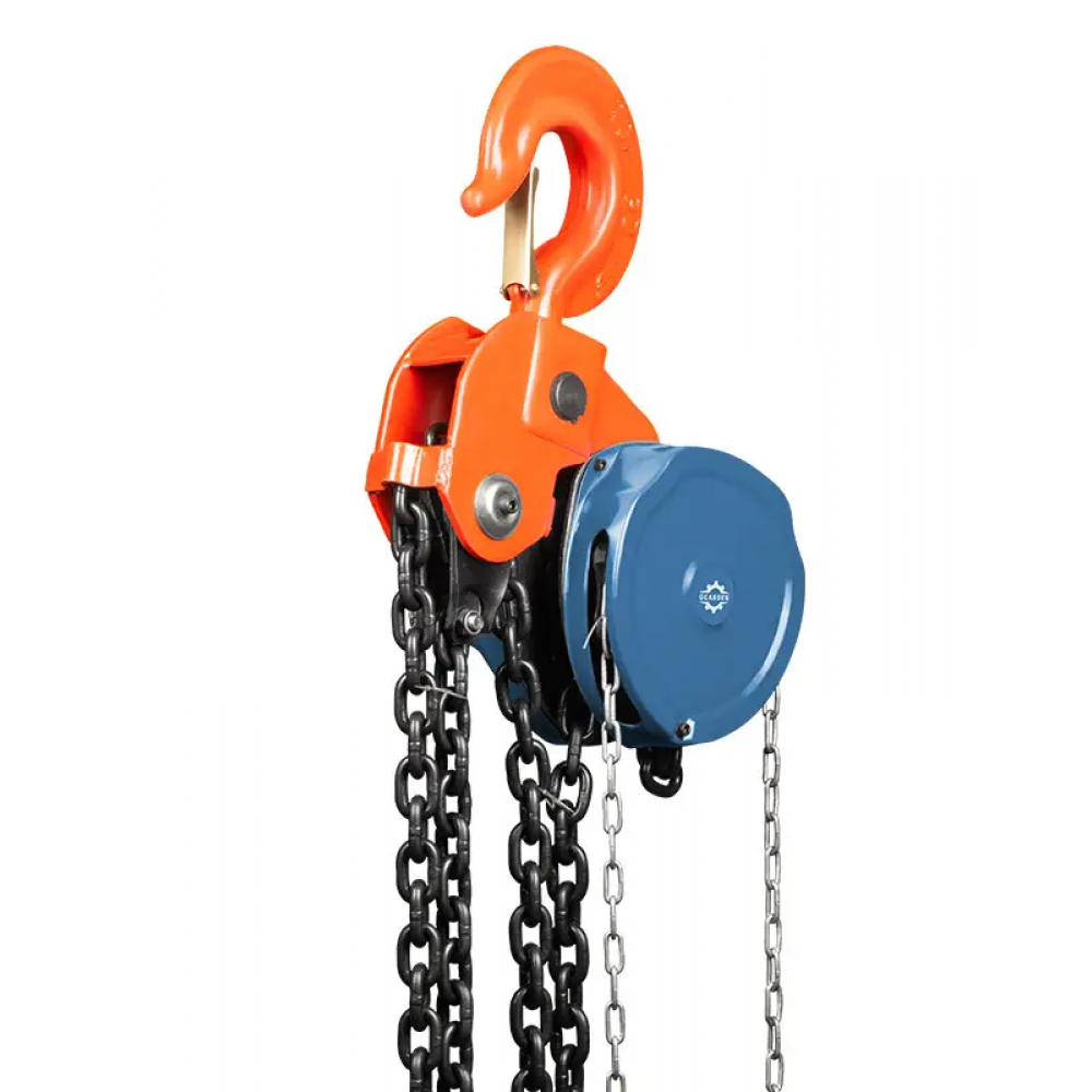 - Грузовая калиброванная цепь класса G80 обеспечивает плавный подъем груза.