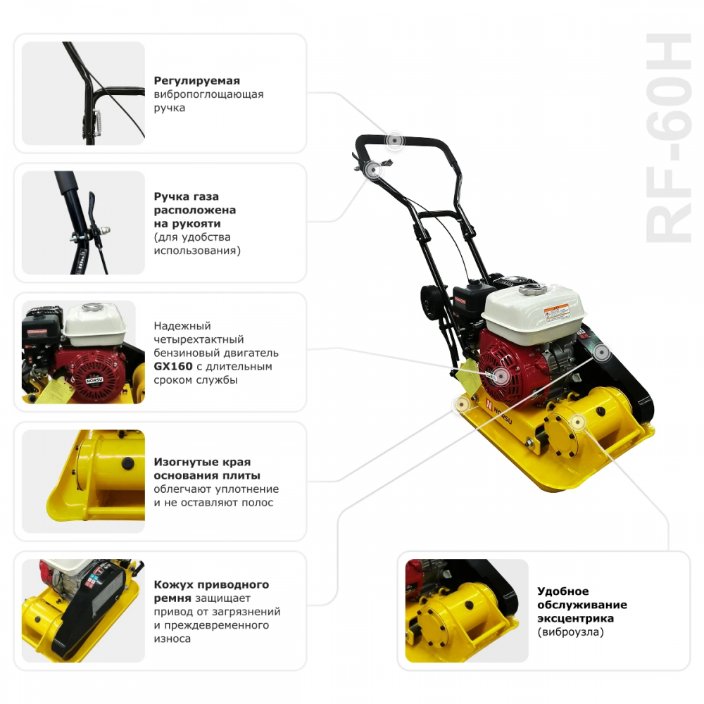 виброплита, колесный комплект, запасной приводной ремень, паспорт изделия, упаковка