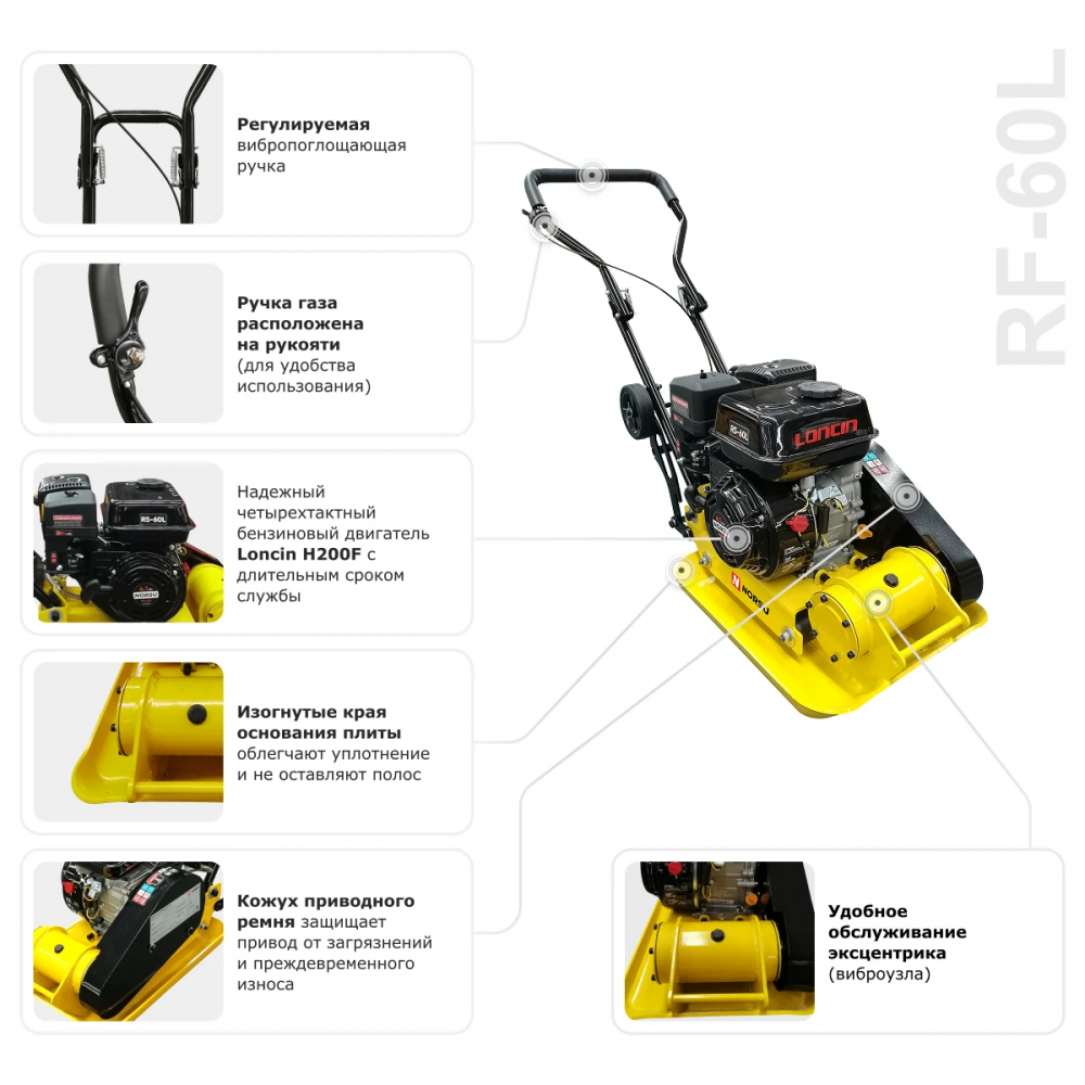 виброплита, колесный комплект, запасной приводной ремень, паспорт изделия, упаковка
